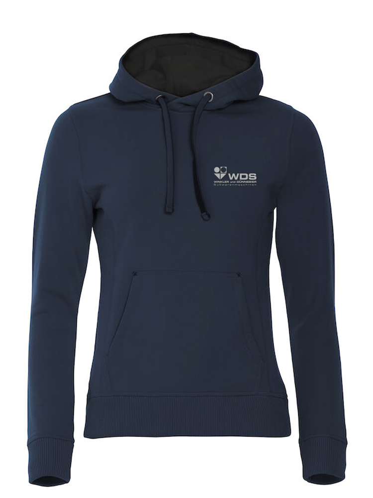 Kapuzensweater mit Kängurutasche geeignet für Smartphone / Kopfhörer. Kapuze mit kontrastfarbigem Netzinnenfutter und elastischem Kordelzug.